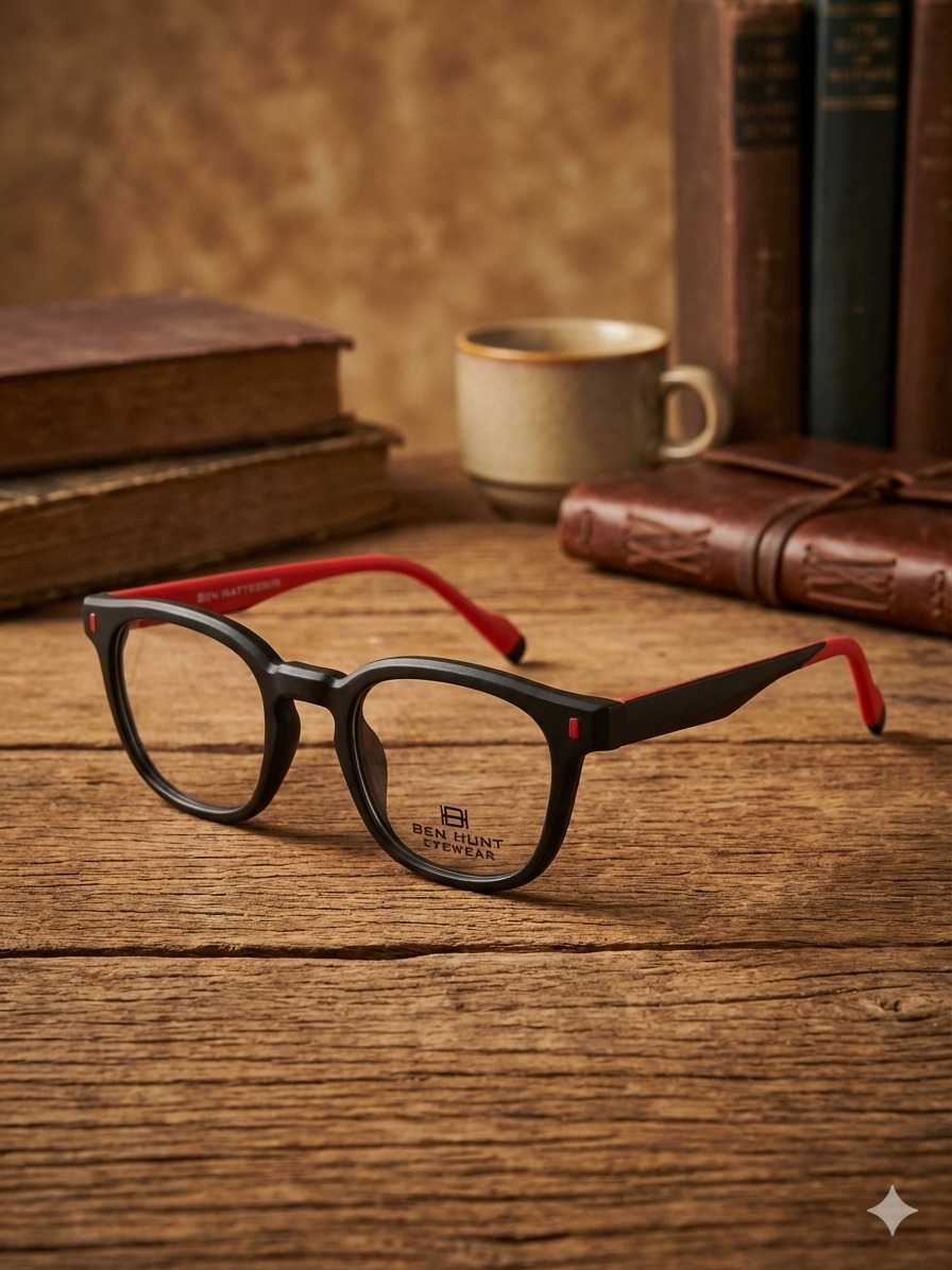 Upgrade your everyday look with these stylish Ben Hunt Eyewear frames πŸ–€β€οΈ. Designed with a sleek black finish and bold red accents, this frame blends timeless sophistication with a contemporary touch.